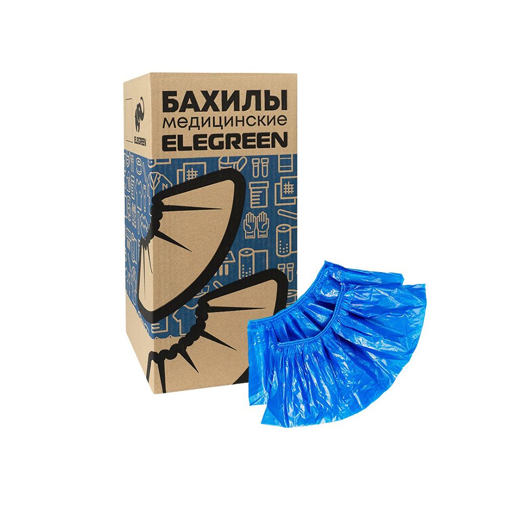 Бахилы полиэтиленовые нестерильные одноразовые EleGreen повышенной прочности с крепкой двойной резинкой.
