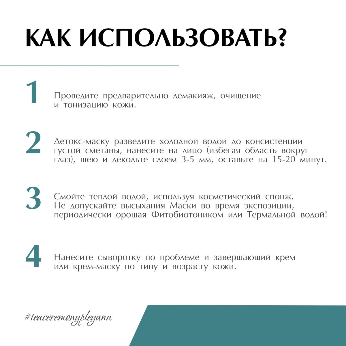 Шаг 2. Детокс-маску разведите холодной водой до консистенции густой сметаны, нанесите на лицо (избегая область вокруг глаз), шею и декольте слоем 3-5 мм, оставьте на 15-20 минут.