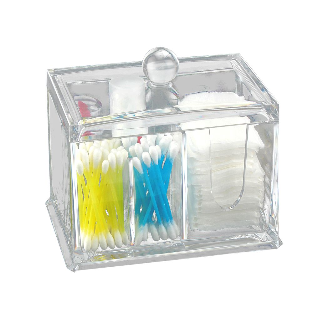 Удобный прозрачный диспенсер IGRObeauty для ватных дисков, палочек и других гигиенических принадлежностей. Небольшой контейнер разделен на сектора и закрывается крышкой.
