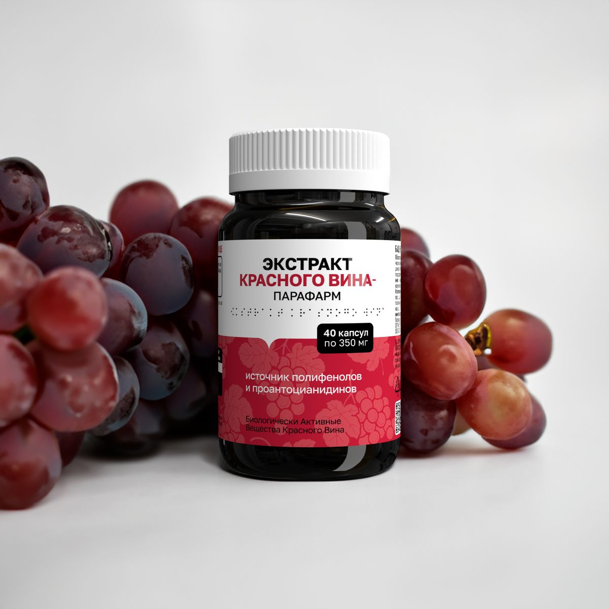ЭКСТАРКТ КРАСНОГО ВИНА содержит один из самых сильных природных антиоксидантов - РЕСВЕРАТРОЛ.