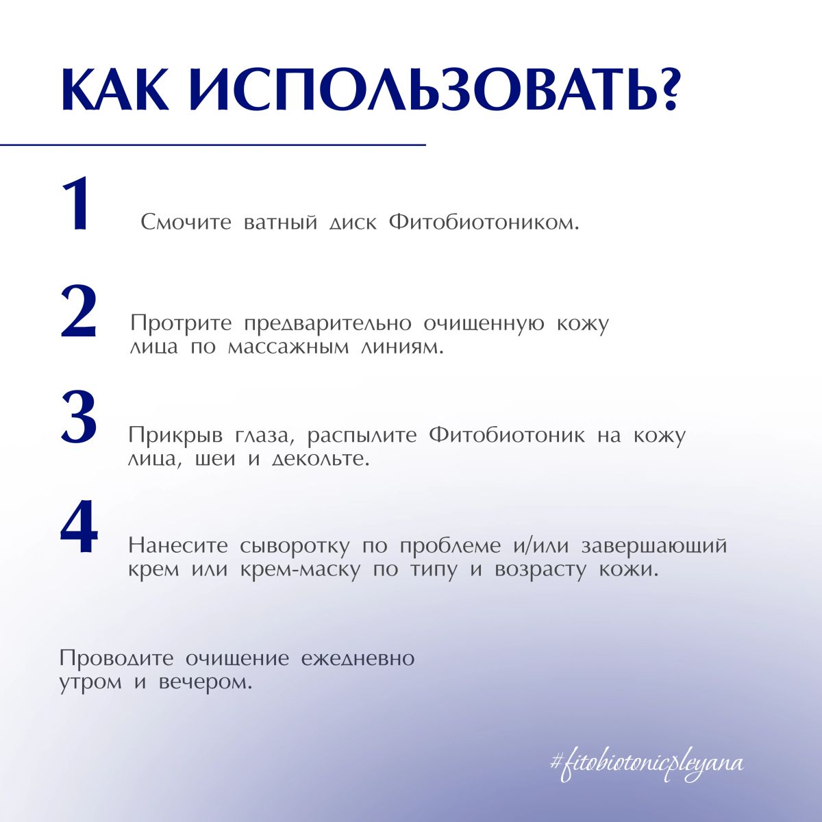 - В качестве увлажняющей маски: смочите салфетку Фитобиотоником, накройте ею лицо и оставьте на 5 мин, периодически распыляя поверх Фитобиотоник с расстояния не менее 20 см