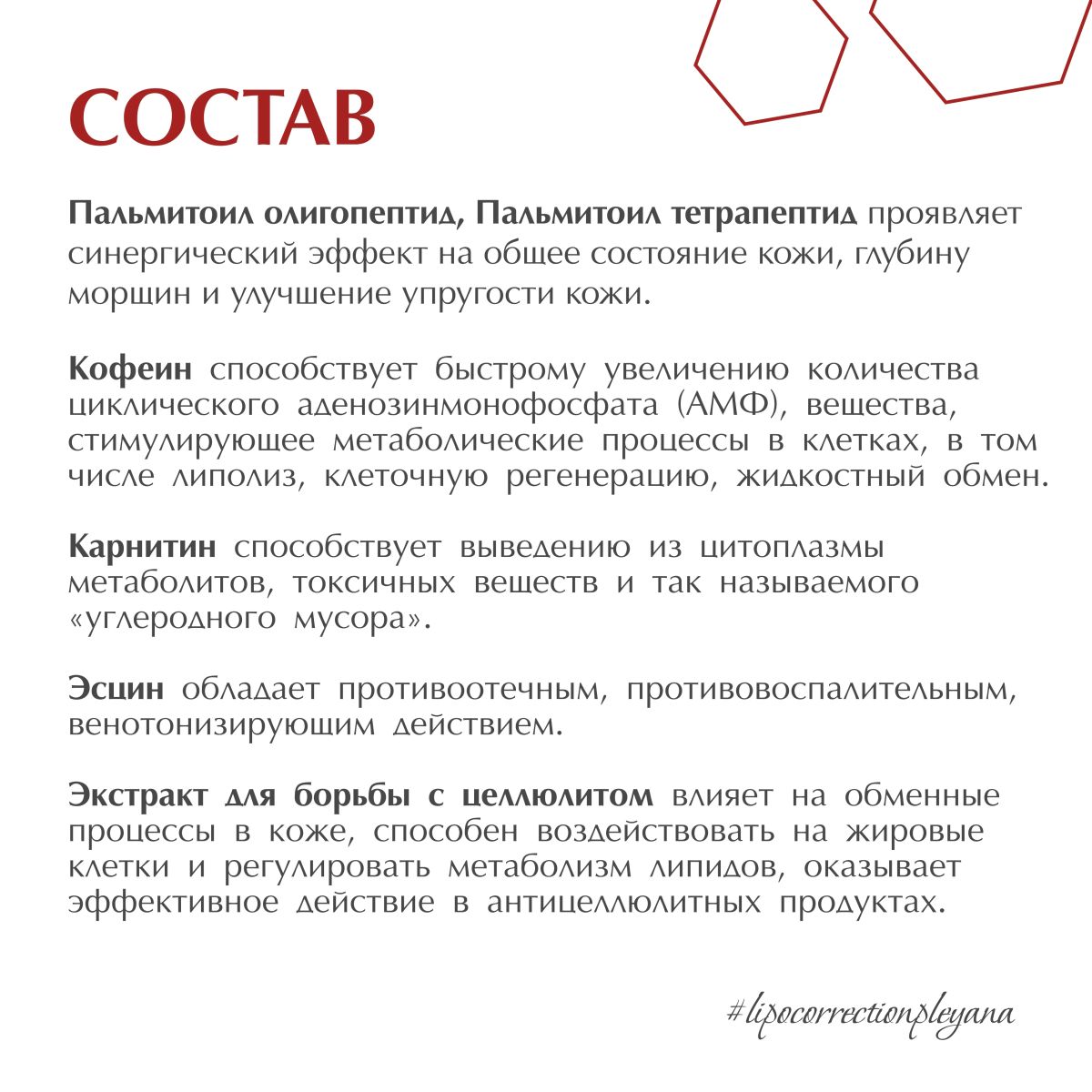 метаболизм липидов, оказывает эффективное действие в антицеллюлитных продуктах.
