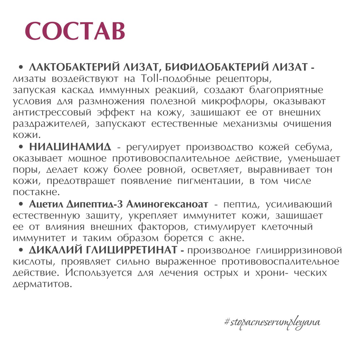 антимикробным действием, нормализует синтез кожного сала, снижает количество воспаленных элементов, обладает матирующим свойством.