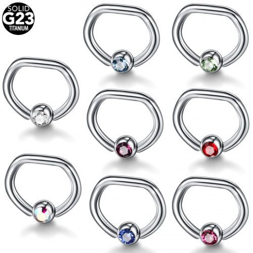 Кольцо-D 1,2 мм. Титан. Шарик с кристаллом АКВАМАРИН голубой