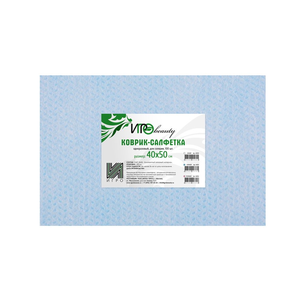 Коврик-салфетка IGRObeauty, голубой, 40х50 см, 100 шт