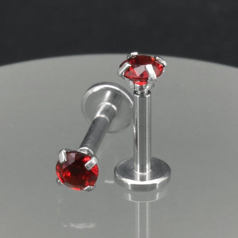 Лабрета-Интернал 1,2мм, Круглый циркон 3 мм (6мм Рубиновый)