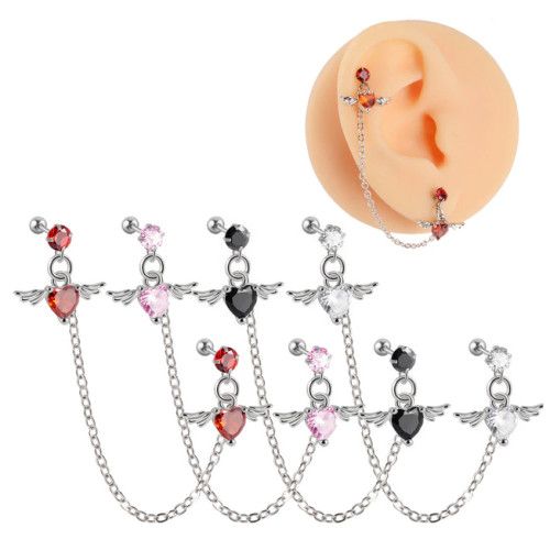 Микроштанга (Сердце с крыльями ) для 2х проколов Серебро