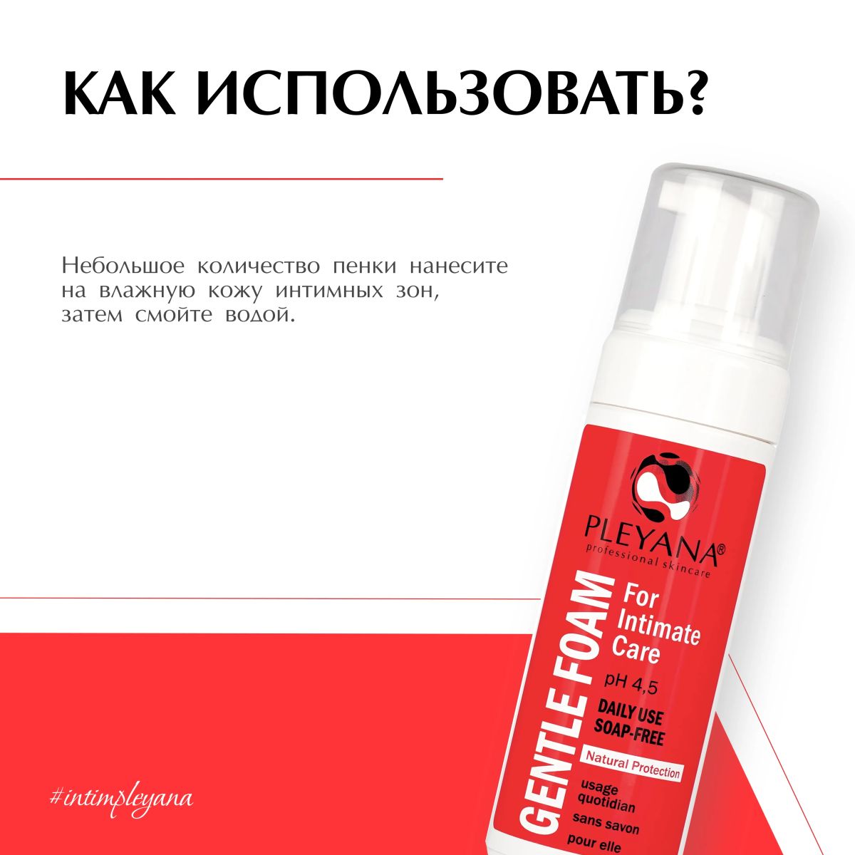 Небольшое количество пенки нанесите на влажную кожу интимных зон, затем смойте водой.