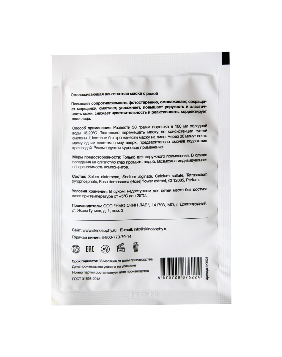 Диатомит, альгинат натрия, сульфат кальция, пирофосфат натрия, экстракт дамасской розы, отдушка.
