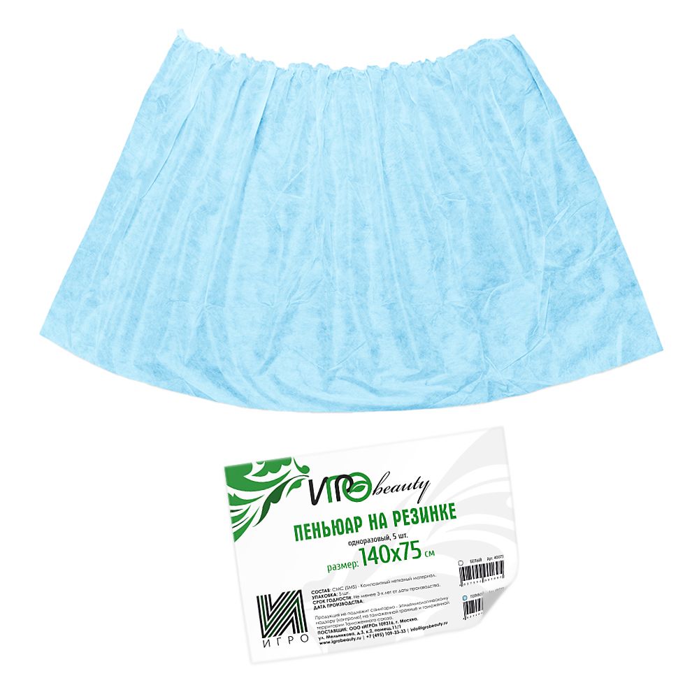 Пеньюар на резинке IGRObeauty, SMS, голубой, 150х80 см, 5 шт