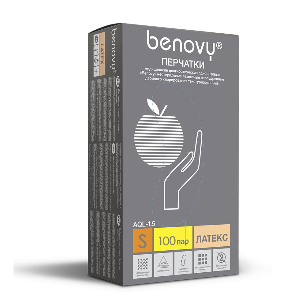 Неопудренные латекстные перчатки BENOVY Q (5,4г) для защиты рук при выполнении различных косметических, медицинский и иных процедур.