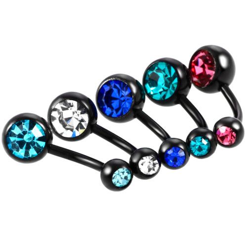 Пирсинг пупка с двумя камнями ЧЕРНОЕ Титановое покр. (Розовый)