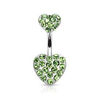 Пирсинг пупка СЕРДЦЕ с кристалами ЗЕЛЕНОЕ