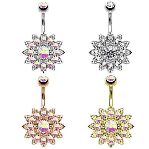 Пирсинг пупка ЦВЕТОК с кристаллами