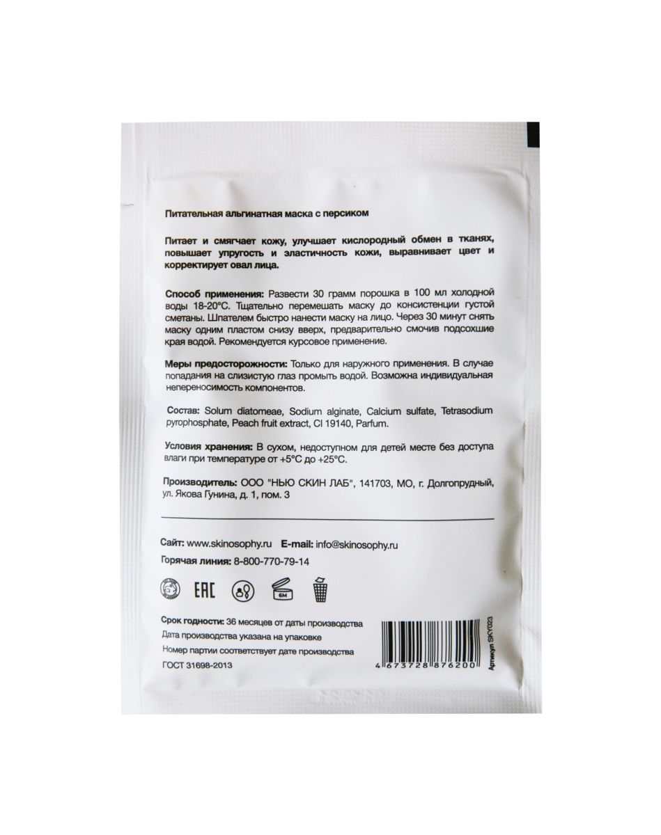 Диатомит, альгинат натрия, сульфат кальция, пирофосфат натрия, экстракт персика, отдушка.