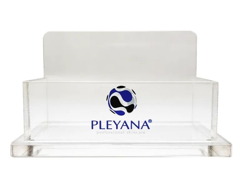 Устойчивая настольная подставка под визитки PLEYANA выполнена из оргстекла.