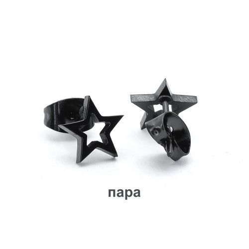 Серьги-ГВОЗДИКИ Пара, ЗВЕЗДЫ (черные)