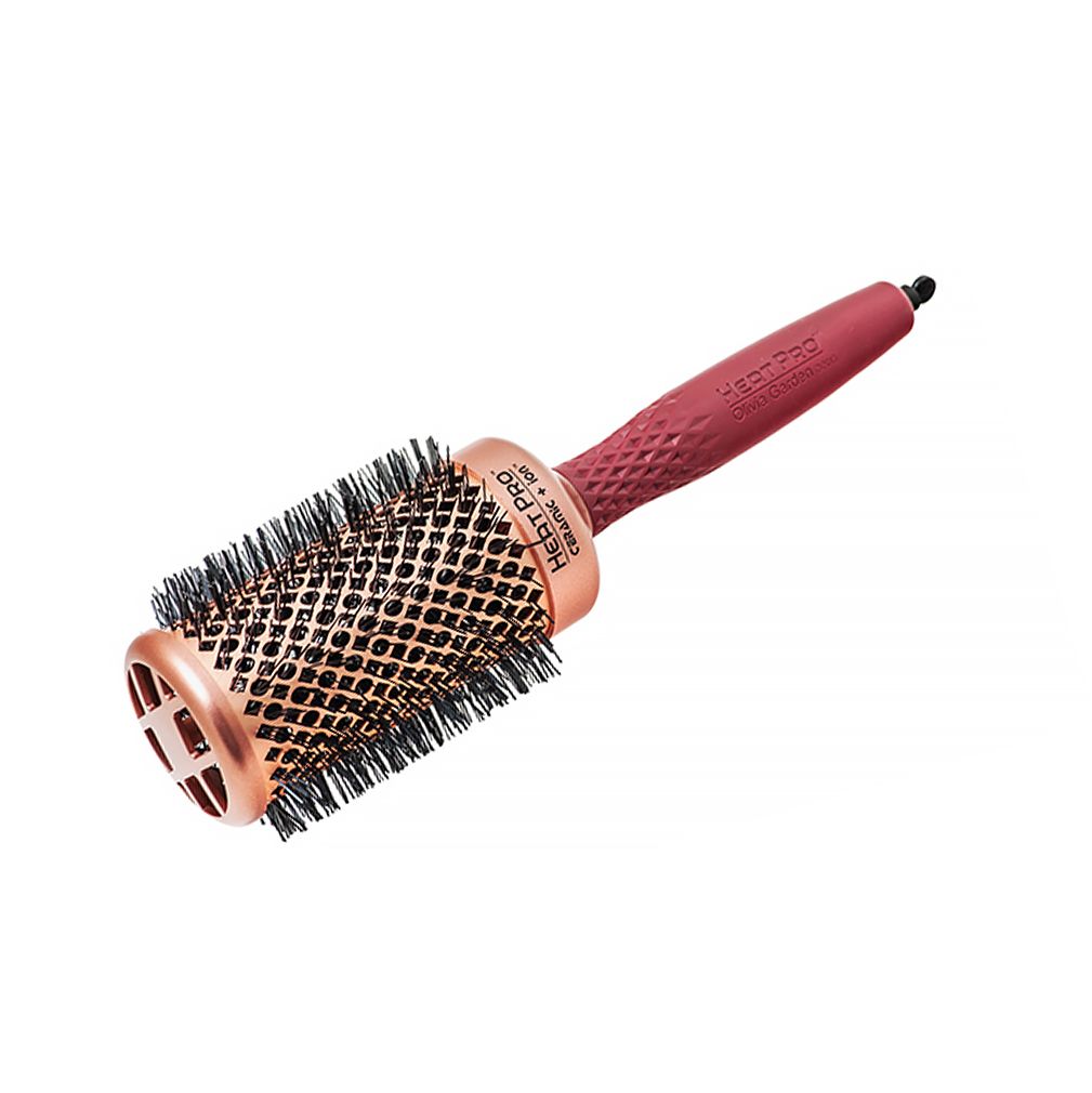 Сверхтермостойкий брашинг Heat Pro 52мм с медно-керамическим покрытием. Медно-керамическое покрытие Copper Ceramic Technology увеличивает скорость нагрева поверхности брашинга в 2 раза. Крупные вентиляционные отверстия уникальной формы в корпусе ствола и крышки брашинга обеспечивают улучщенную циркуляцию горячего воздуха для более очевидного и устойчивого результата укладки.