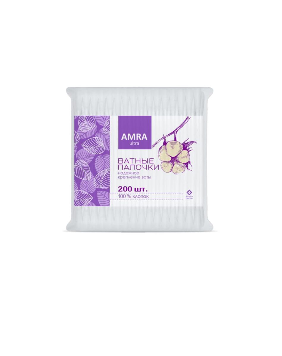 Ватные палочки AMRA для различных косметологических процедур, маникюра, педикюра и бытовых нужд. Не оставляют ворсинок на коже. Благодаря большому количеству ваты палочки не царапают кожу. Так как вата плотно намотана и отлично закреплена, она не соскальзывает со стика.